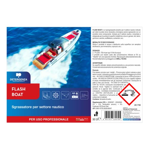 DETERGENZA PROFESSIONALE. Flash Boat Detergente Universale concentrato per Barche. Sgrassatore Multiuso per Pulizia e Lavaggio della Tua imbarcazione. per Ogni Parte del Settore Nautico. 1pz da 30L