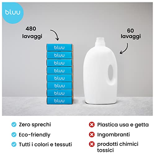 BLUU Detersivo in fogli - 60 pezzi, Detersivo lavatrice ecologico, plastic free, Per lavatrice e per lavaggio a mano, Detersivo bucato da viaggio, Detersivo biologico, sostenibili (senza profumo)