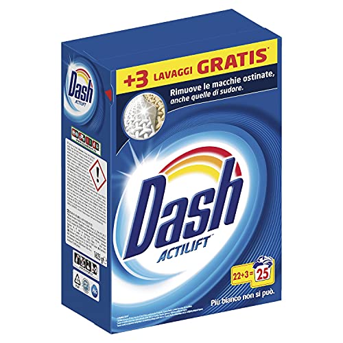 Dash Detersivo Polvere Lavatrice, 25 Lavaggi, Classico, Bucato Pulito, Maxi Formato, Rimuove le Macchine, Brillantezza per Tutti i Capi