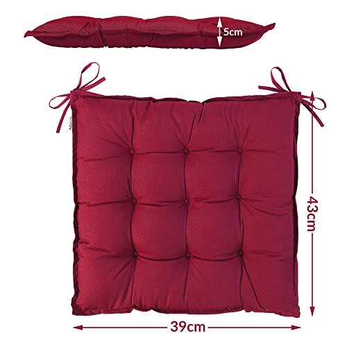 Detex Set 6pz Cuscini per Sedia 45x45x5cm con Lacci Effetto Visco Interni Esterni Cuscino Coprisedia Rosso Scuro