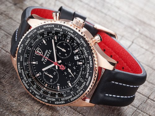 DeTomaso Firenze XXL Orologio, Display Cronografo, Uomo, Pelle, Nero