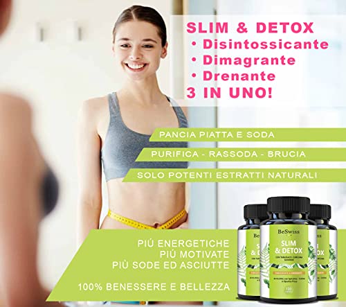 DRENANTE FORTE E DETOX | Slim & Detox è un integratore alimentare 100% naturale con proprietà diuretiche, acceleranti il metabolismo, dimagranti ed energizzanti. Favorisce lo smaltimento dei liquidi e dei grassi sottocutanei che causano la cellulite e gli inestetismi localizzati.