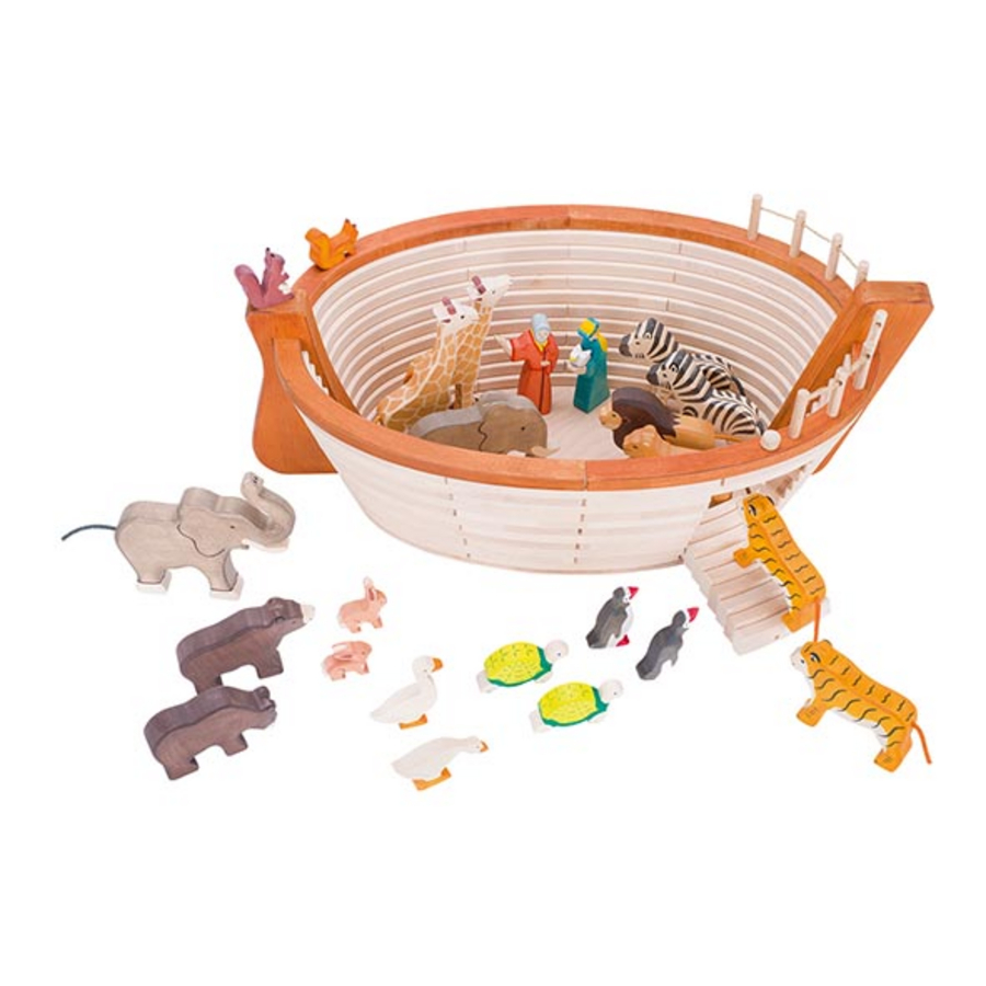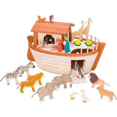 Dettagli del prodotto: Aprire il portello per salire a bordo dell'arca Rimuovendo la cabina e il ponte, è facile giocare con l'arca. Una volta che tutti gli animali sono a bordo, l'arca si mette in moto grazie a un'asta rotante Senza decorazioni! Dimensioni e peso: Dimensioni (lunghezza x larghezza x altezza): 88 x 59 x 42 cm Peso del prodotto: 16,2 kg Materiale e cura: Materiale: Legno
