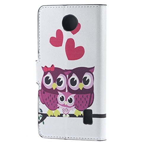 DETUOSI Huawei Ascend Y635 Portafoglio,PU Cuoio Caso Guscio con Carte di Credito Slot Protettiva in Pelle Flip Cover Case per Huawei Ascend Y635 Custodia Portafoglio Cover Casi(Tre Gufo Viola)