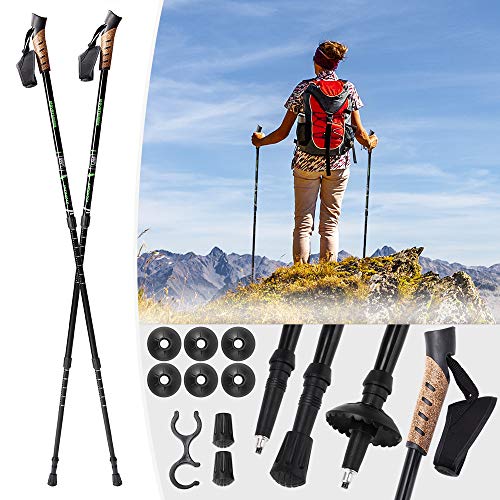 Deuba Bastoncini da Nordic Walking in Alluminio Colore Nero con Parti di Ricambio - Regolabili in Altezza