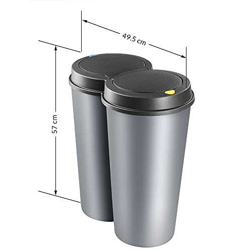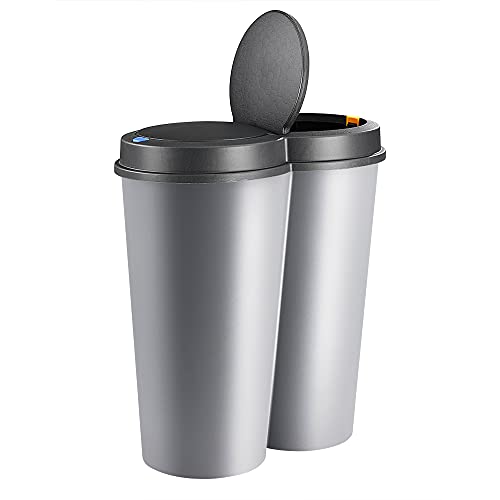 Deuba Cestino dei Rifiuti 50 L Doppio Separazione Rifiuti 2 x 25L Secchio Spazzatura Bidone Argento