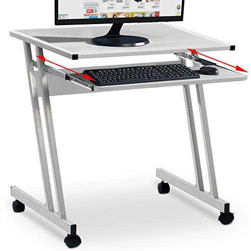 Deuba Tavolino Bianco Scrivania per Computer con Ripiano Estraibile per Tastiera e rotelle - Dimensioni: 62 x 48 x 73 cm - profondità ripiano Estraibile per Tastiera: 60 cm