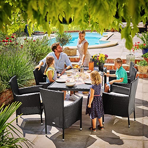 Deuba Tavolo e sedie da Giardino Rattan Cuscini 8 sedie impilabili Set mobili Esterno Giardino Balcone terrazzo Patio