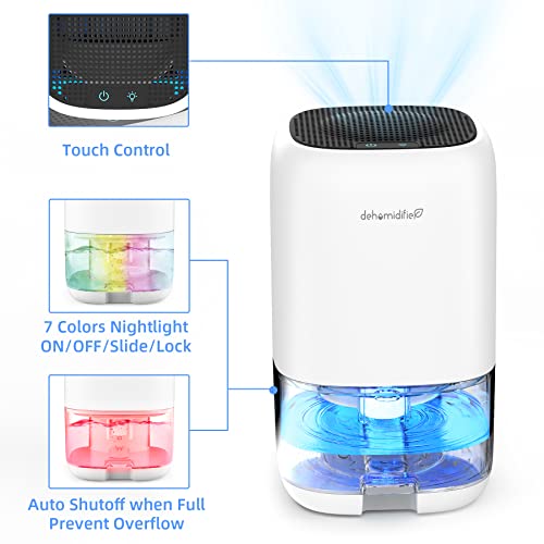 Deumidificatore Casa, 1000ml Mini Deumidificatore portatile, 7 Colori LED, Silenzioso, Basso Consumo, per Muffa e Umidità, Deumidificatori Ideale per Armadi, Cucina, Ufficio, Bagno