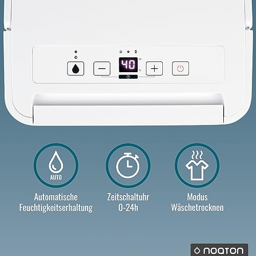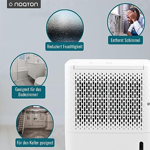 Deumidificatore Noaton DF 4110, max 11.5L/24h, dimensioni ambiente circa 65 m³(~25 m²), 230 W, serbatoio dell'acqua da 2.1l, tubo di scarico, timer, con sensore di umidità - Contro l'umidità, la muffa