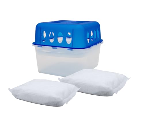 1 deumidificatore ultra fresco, scatola con 2 sacchetti di ricarica da 400 g, deumidificatore per ambienti con vaschetta di raccolta, riutilizzabile, bianco, blu