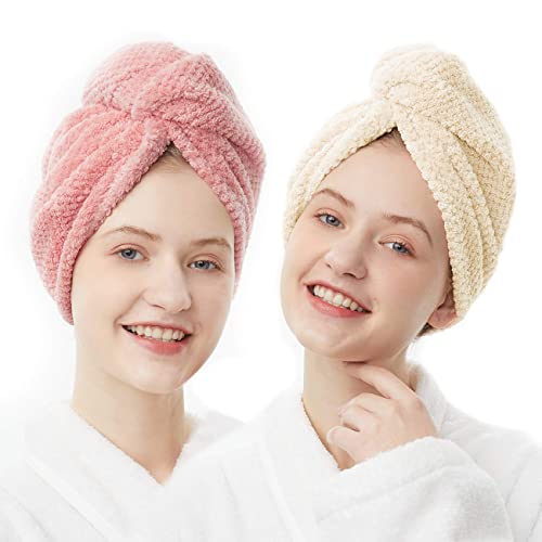 【OCCASIONE】 Perfetto per donne, uomini, bambini, l'asciugamano per capelli è anche un buon regalo per Natale, Halloween, compleanno, ecc. Puoi condividerlo con i tuoi amici e familiari. Dimensioni: circa 22 cm di altezza e 60 cm di lunghezza, set da 2, colore: rosa, beige, adatto per lavatrice e asciugatrice
