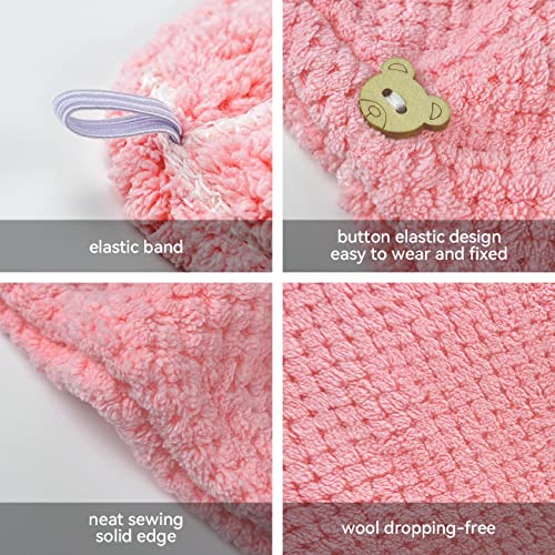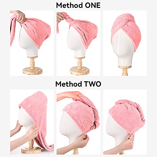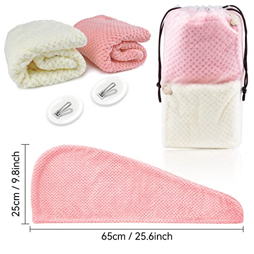 DEVASO Asciugamano Capelli Turbante, 2 Pcs Asciugamano in Microfibra, Turbante Capelli con Bottoni, Asciugatura Rapida Super Assorbente, Capelli Lunghi Tutti i Tipi Capelli, Rosa, Bianco