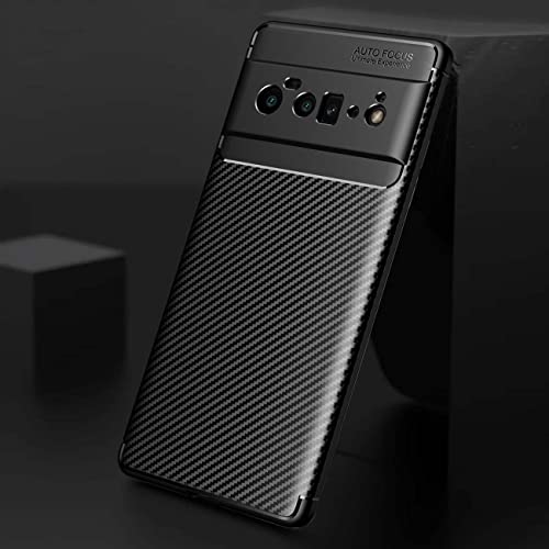 DEVASO Custodia per Google Pixel 6 PRO Sottile Silicone TPU Fibra di Carbonio Anti-Graffio Antiscivolo Protezione Cover - Nero