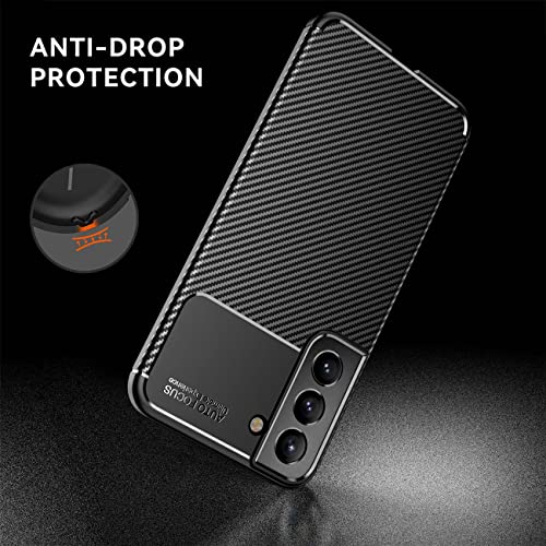 DEVASO Custodia per Samsung Galaxy S22 Plus/ S22+ Sottile Silicone TPU Fibra di Carbonio Anti-Graffio Antiscivolo Protezione Cover + 1 Pezzi Pellicola Vetro Temperato - Nero