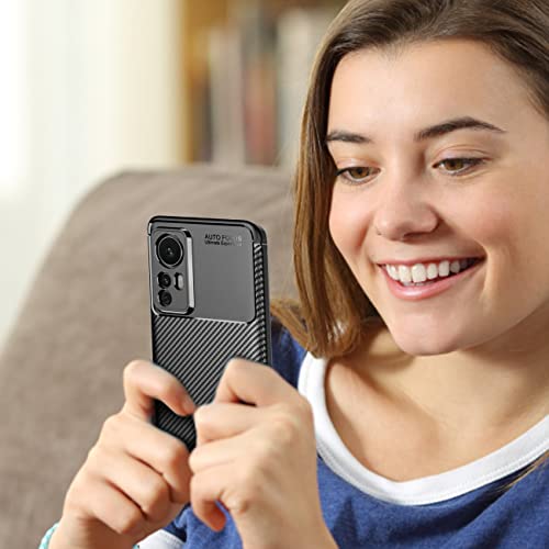 DEVASO Custodia per Xiaomi Mi 12 Pro Sottile Silicone TPU Fibra di Carbonio Anti-Graffio Antiscivolo Protezione Cover - Nero