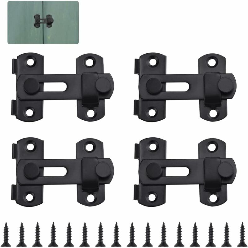 Sei una donna che vive da sola? Sei preoccupato per la sicurezza della tua camera da letto? La serratura antifurto è realizzata in acciaio inossidabile di grosso spessore, resistente e non facile da arrugginire. La porta con chiavistello può essere scorrevole ed ha effetto antifurto. Può anche impedire ad altri di entrare improvvisamente nella tua stanza. Materiale metallico di alta qualità La serratura della porta scorrevole è realizzata in acciaio inossidabile duro, impermeabile e antiruggine, quindi è molto adatta per l'installazione sulla porta del bagno, che può proteggere la privacy e può essere utilizzata a lungo. Design elegante La superficie del chiavistello scorrevole della porta è vernice spray nera opaca, che non è facile da sbiadire, piccola e raffinata, senza un design complicato. Il design della vite svasata rende il dado più invisibile. Semplice da usare Innanzitutto, la serratura antifurto viene fornita con 16 viti, non è necessario acquistare altri accessori, basta