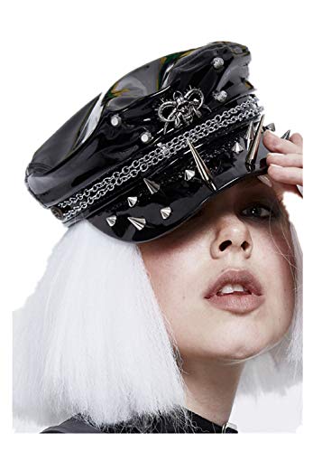 Devil Fashion Berretto da basco da donna, nero, Steampunk, gotico, in ecopelle, taglia unica