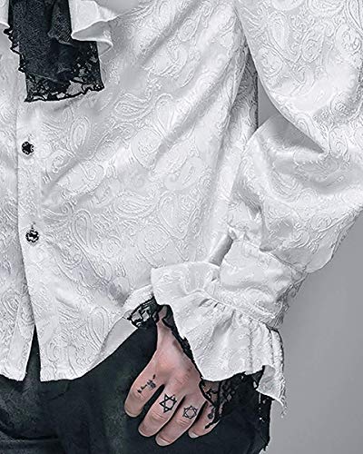 Devil Fashion Uomo Gotico Camicia Maglietta Bianco Steampunk Regency Aristocrat + Foulard