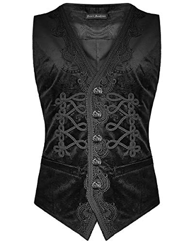 Devil Fashion Uomo Gotico Gilet Nero Paisley Velluto Steampunk Regency