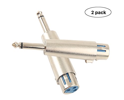 Devinal, adattatore professionale per microfono audio, da spina singola (6,35 mm) maschio a presa XLR femmina a 3 pin, connettore e convertitore per jack stereo (confezione da 2)