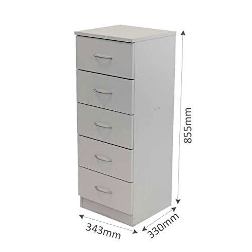 Devoted2Home Boldon Budget-Mobiletto per Camera da Letto, 5 cassetti, Colore: Bianco, Plastica e Legno, 33x34.297x88.5 cm