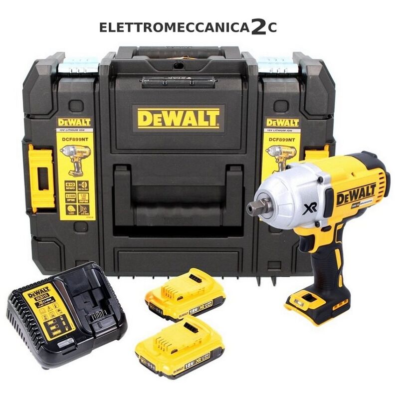 DCF899D2 Caratteristiche L‘avvitatore ad alta potenza è dotato di 2 batterie da 5Ah con tecnologia XR Litio Potente motore che fornisce fino a 950Nm di coppia di serraggio e fino a 2400 impulsi al minuto La carcassa in magnesio rende l‘utensile più leggero e bilanciato 3 velocità per selezionare la coppia adatta ad ogni applicazione Attacco utensile 1/2 Luce LED pisizionata sulla testa dell‘utensile per garantire una visibiltà elevata Massimo confort durante l‘utilizzo grazie all‘impugnatura in gomma morbida Valigetta T-STAK II in dotazione Dotazione 2 Batterie 18V 2Ah XR Litio Caricabatterie universale Valigetta T-STAK II Dati tecnici Coppia di serraggio 135 / 400 / 950 Nm Potenza resa 610 Watt Velocità a vuoto 0 - 400 / 1200 /1900 Giri/min Colpi/Impulsi al minuto 0 - 2400 colpi-imp/min Max. Diametro Bullone M20 Peso 3.3 Kg Lunghezza 224 mm Vibrazioni mano/braccio - percussione 13 m/s² Incertezza (Vibrazioni) 5.9 m/s² Pressione acustica 101 dB(A) Incertezza (Potenza sonora) 3 dB(A)