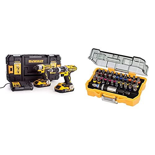 Dewalt DCK266P2T Kit Trapano a Percussione Dcd796 + Avvitatore a Impulsi Dcf887 + 2 Batterie 5 Ah + Caricatore Dcb115 + Valigetta Tstak & DT7969-QZ Set Avvitatura Composto da 32 Pezzi Assortiti