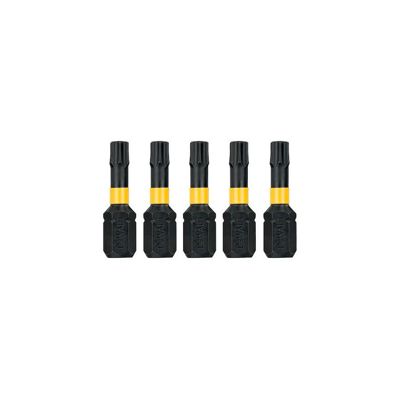 Inserti DEWALT DT7384T-QZ Maggiore durata dei bitElimina le teste arrotondate delle viti e le oscillazioniMeno di 4° di movimento EXTREME FlexTORQ screwdriver bits are designed to withstand the high forces of todays impact drivers. This significantly reduces the instances of failure when fixing large screws in place. Applicazioni Per tutti i lavori di avvitatura Per lavori di avvitatura con viti Torx Specifiche Lunghezza del prodotto 4 in Tipo di testa del giravite Torx, Torx Altezza prodotto 8 in Numero di pezzi 5 Lunghezza del prodotto 25 mm Peso del prodotto 0.032 lbs