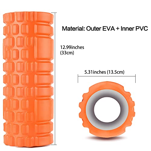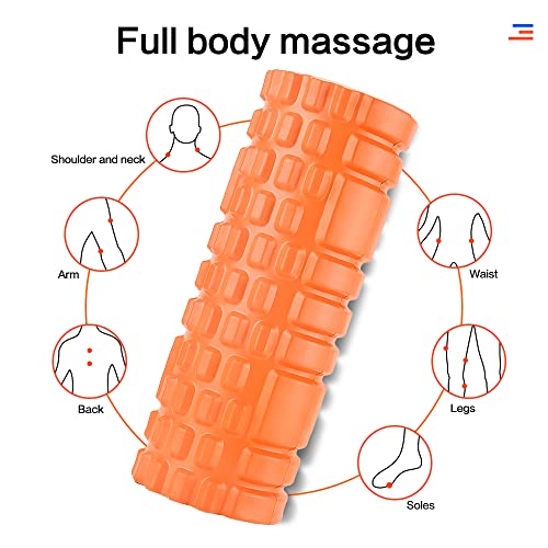 Dewanxin Foam Roller, Rullo in Schiuma Massaggiatore Eccellente per l'Auto Massaggio, Esercizio Muscle Roller Rullo in Schiuma per Massaggio Muscolare Trigger Point Grid per Yoga (Arancione)