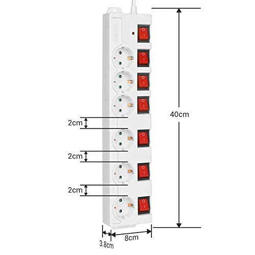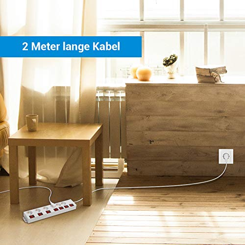 Presa multipla da 2 metri: la ciabatta con protezione da sovratensione con cavo lungo 2 metri offre flessibilità di ricarica per raggiungere prese remote e punti difficili da raggiungere;