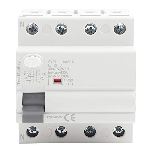 DEWIN Interruttore Automatico, Interruttore Automatico Differenziale 4P 400VAC RCCB Protettore di Dispersione Elettrica (63A)
