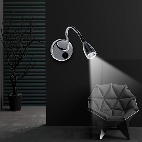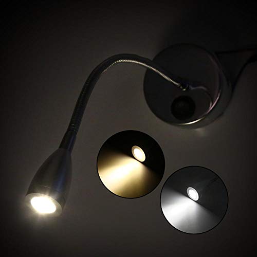 DEWIN Lampada da Lettura Orientabile, 3W 85-265V Lampade da Parete Moderne a LED Argento Lampada da Lettura da Comodino Flessibile a Collo di Cigno (No Switch - Bianco Caldo 3000-3205K)