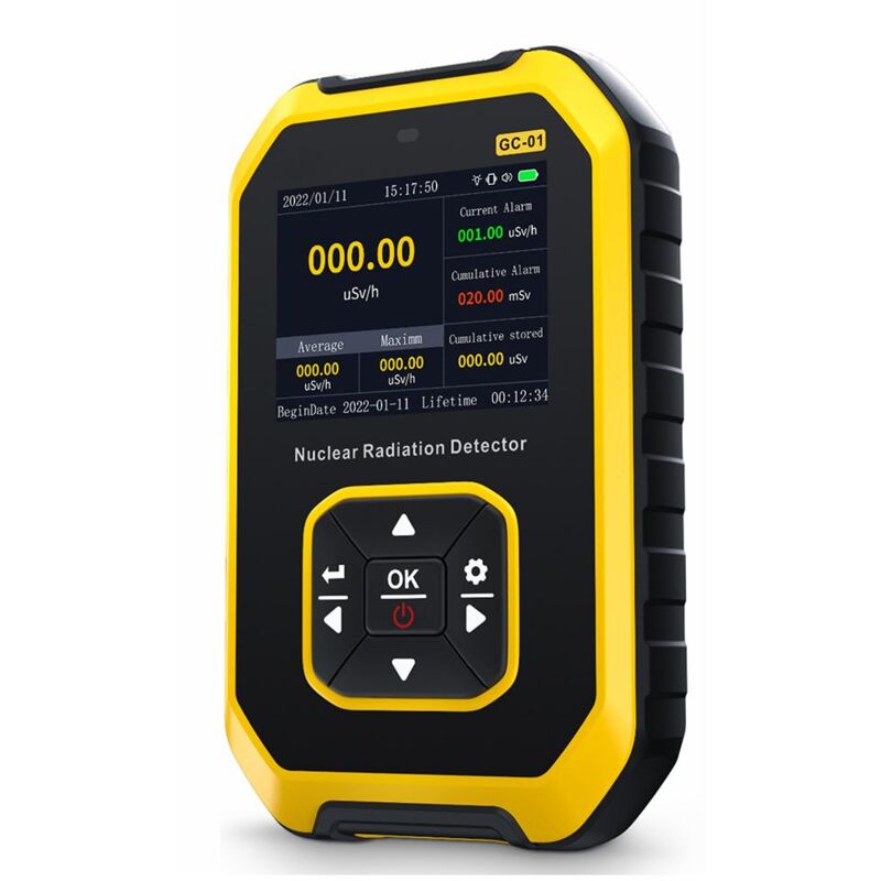 Caratteristiche: Display a cristalli liquidi per letture più chiare. È possibile impostare il valore dell'allarme. Supporta tre modalità di allarme: suono, flash e vibrazione per una misurazione più comoda. Valore della dose in tempo reale, valore medio, valore massimo, dose cumulativa per soddisfare le diverse esigenze della scena. br /> Il sistema integrato -La batteria integrata da 1100 mAh dura più a lungo e l'interfaccia di tipo C è più comoda da caricare. Il contatore Geiger integrato migliora la sensibilità di rilevamento, l'errore è piccolo e il tempo di misurazione della velocità di risposta è inferiore a 1 secondo . Può essere ampiamente utilizzato nei campi della fisica nucleare, del monitoraggio ambientale e dell'industria. Caratteristiche: Modello: GC01 Tasso di corrente di dose: 0,00-1000usV /h (10mSv/h) Tipo di raggi di rilevamento: raggi gamma, raggi X, raggi beta Rivelatore: tubo GM compensato in energia (tubo contatore Geiger) Lingua: cinese + inglese, cambiare