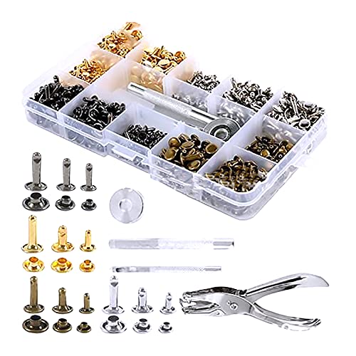 DEWIN Rivetti in Metallo a Doppio Cappuccio, 540 Set 3 Misure Rivetti in Pelle Rivetti a Doppio Cappuccio Borchie Tubolari in Metallo 4 Colori con 3 Kit di Strumenti di Fissaggio per Riparazioni Artig