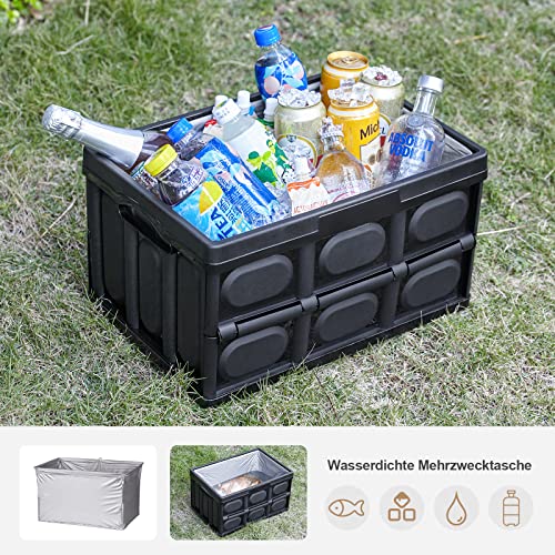 DEWUR Contenitore da campeggio, tavolo pieghevole da campeggio, organizer per auto, scatola pieghevole stabile, impilabile, scatola di plastica con coperchio, borsa termica grande (30 l, nero)