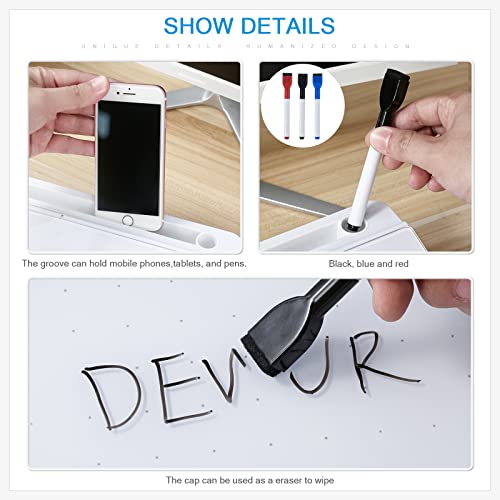 DEWUR lavagna lavagna da scrivania in vetro lavagna memo piccola dock supporto per cellulare supporto per tablet supporto per tastiera organizer da scrivania con accessori per ufficio bianco