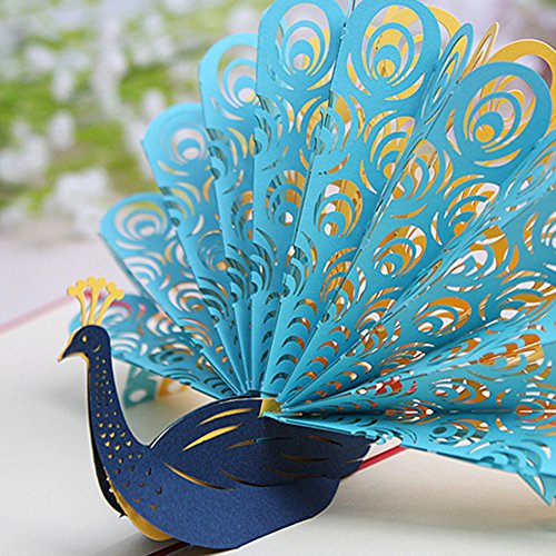 Dexinghaoye - Biglietto di auguri pop up, con pavone 3D 15cm x 15cm (Approx.) Purple
