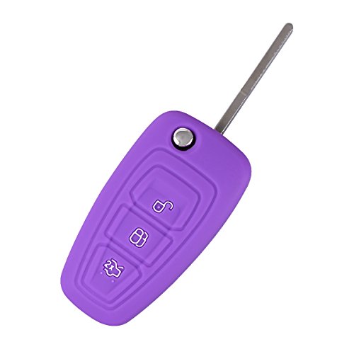 Dexnor Cover per Chiave Ford Focus Fiesta Kuga Mondeo B-Max Grand C-Max S-Max Galaxy Silicone Custodia con 3 Tasti Protezione Accessorio Gusci in Silicone per Chiave Auto Telecomando Protettivo Chiavi Key Cover Case Morbido Protezione Protettiva - Porpora