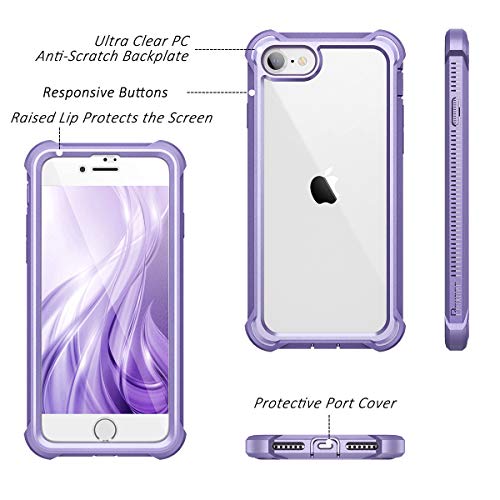 Dexnor Cover Compatibile con iPhone SE 2020/8/7 (4.7'') Cassa, TPU Custodia di Protezione a 360 Gradi, [Antiurto] [Leggero] PC Pannello Posteriore Trasparente, con Protezione per Lo Schermo - Viola