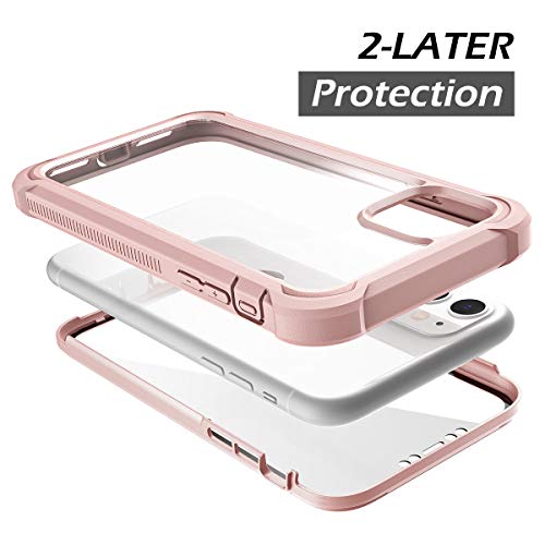 Dexnor Cover Compatibile con Iphone 11 6.1'' Cassa, Custodia di Protezione a 360 Gradi, [Antiurto] [Leggero] Pannello Posteriore Trasparente, con Protezione per lo Schermo - Rosa