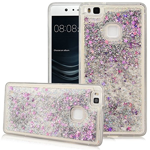 Dexnor Cover Huawei P9 Lite Glitter Liquido Brillantini Custodia 3D Cristallo di Bling di Flusso Trasparente Morbido Placcatura TPU Silicone Gel Protettiva Bumper Case Copertura Antiurto - Silver Sand Violet Stelle