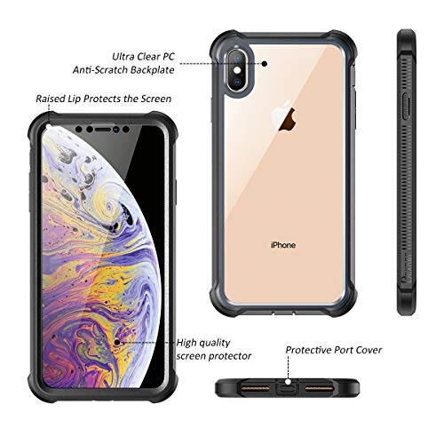 Dexnor Cover per Iphone XS MAX (6.5'') Cassa, Custodia di Protezione a 360 Gradi, [Antiurto] [Leggero] Pannello Posteriore Trasparente, con Protezione per lo Schermo - Nero