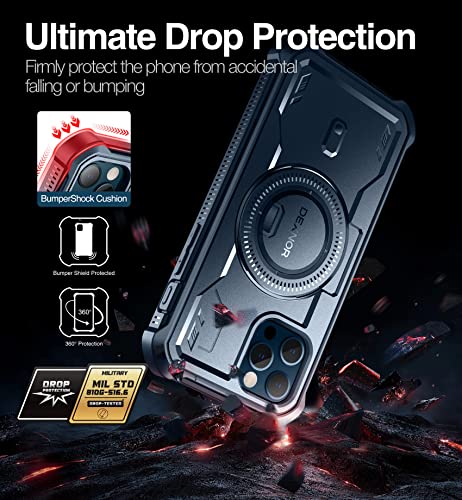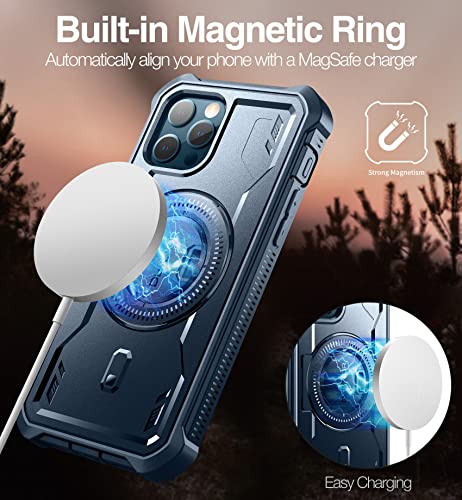 Dexnor Cover Magnetica per iPhone 12/12 Pro Cover Compatibile con MagSafe [Con pellicola protettiva a 360 ° e staffa],Heavy Duty Protezione Militare Grado Shockproof Cover protettiva - Blu marino