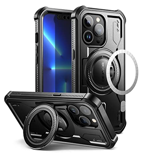 Dexnor Cover Magnetica per iPhone 13 Pro Cover Compatibile con MagSafe [Con pellicola protettiva a 360 ° e staffa],Heavy Duty Protezione Militare Grado Shockproof Cover protettiva - Nero