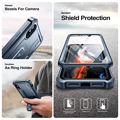 Dexnor Custodia Cover per IPhone Xs con Protezione per lo Schermo Integrata Copertura Protettiva Antiurto Resistente agli urti Anteriore e Posteriore 360 con Supporto - Blu