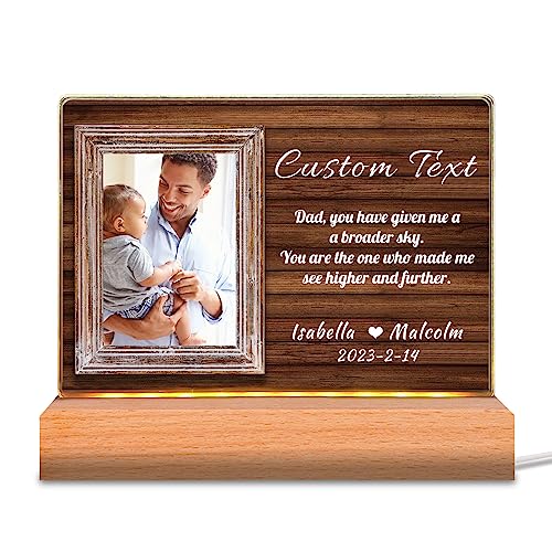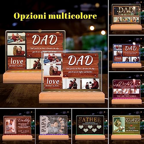 DEZUNTU Luce notturna a LED con foto personalizzata, regali per papà da figlia figlio, lampada da notte in acrilico personalizzata con testo, regali per la festa del papà di compleanno