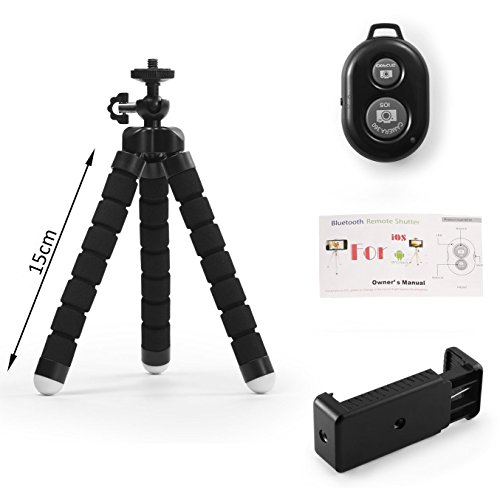 Dezuo 18cm Mini Treppiede Flessibile Cavalletto per Telefono, Smartphone, Gopro, iPhone, Fotocamera Compatto Con Supporto Cellulare Universale e Telecomando Bluetooth