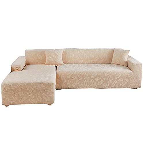 DFANCE Copridivano Angolare con Penisola per 1 2 3 4 5 Posti,Copridivano con Chaise Longue,Copridivano Elasticizzato Universale,Animali Domestici Bambini Protezione Mobili,E,4 Seat (235~300cm)