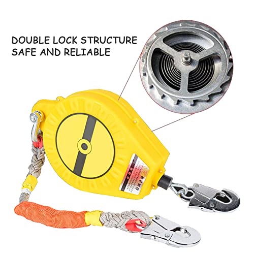 Ⅲ [ Struttura a doppia chiusura ]: la linea di vita retrattile può frenare e bloccare rapidamente gli oggetti che cadono entro una distanza limitata che si attiva durante una caduta per ridurre l'accelerazione, le forze di impatto e ridurre al minimo le lesioni. Carico massimo 150 kg. Proteggi efficacemente la tua sicurezza, è un equipaggiamento protettivo indispensabile per i lavoratori ad alta quota.
